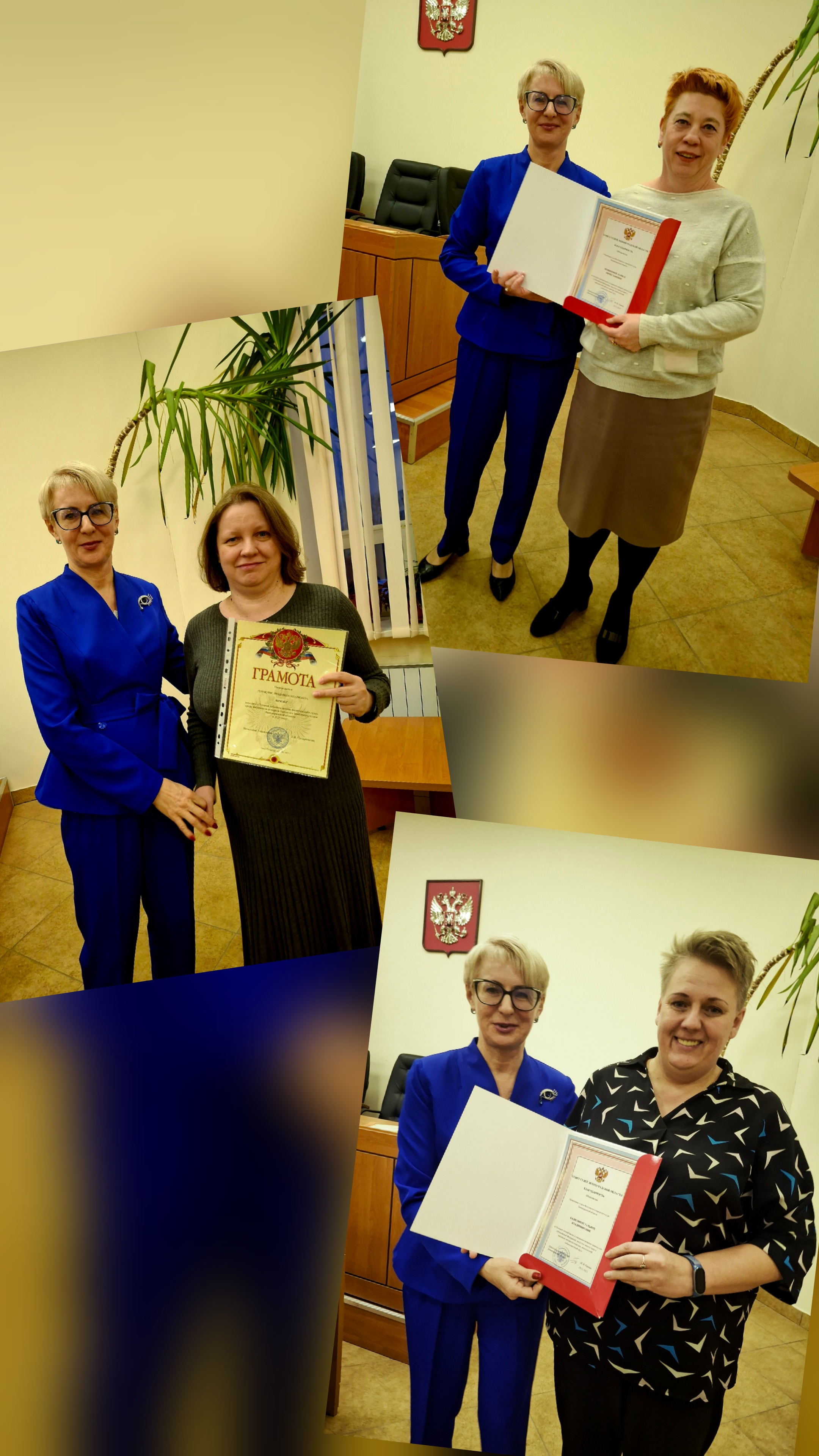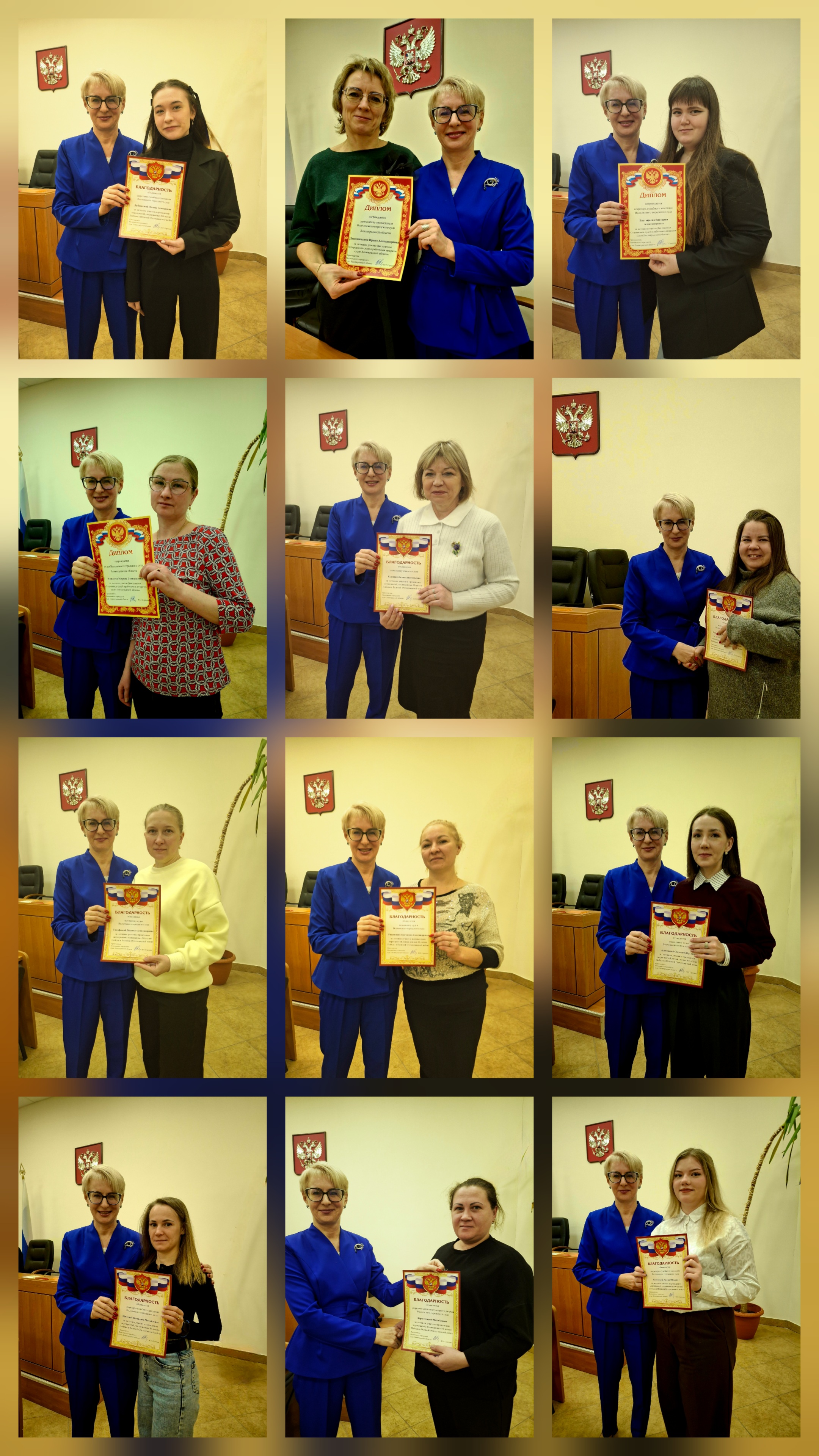 24 декабря 2025 года в Волховском городском суде прошло итоговое торжественное мероприятие, посвященное награждению судей и сотрудников аппарата Волховского городского суда. Благодарностью Совета судей Ленинградской области за большой значимый вклад в совершенствование правосудия в Российской Федерации, заслуги в защите прав и законных интересов граждан, многолетний добросовестный труд награждены: начальник отдела Волховского городского суда Ленинградкой области Бадягина Т.В., секретарь суда Новикова Л.В., судья Назарова Е.А., помощник судьи Шабалина П.Н., За 2 место награждена грамотой за участие в конкурсе «Лучший работник архива федерального суда» среди работников аппарата городских (районных) судов Ленинградской области в 2025 году Плужник Л.И. За активное участие в проведении мероприятий, посвященных 80-летию Победы в Великой Отечественной войне награждены Благодарностью Волховского городского суда : начальник общего отдела Кукина Л.А., старший специалист первого разряда Керш А.М., ведущий специалист Павленко А.А., секретари судебного заседания Евстафьева В.А., Естюкова Л.Ю., Дубковская П.А., Щитова В.М., помощники судей Алексеева С.Ю., Разумова А.А., Богданова Н.С., Шабалина П.Н., Тимофеева Л.А., Дюдина Е.С. и помощник председателя Анухина Т.А За активное участие Дня здоровья «Спартакиада судей и работников аппаратов судов Ленинградской области» наградили дипломами Волховского городского суда : заместителя председателя Десятниченко И.А., начальника отдела обеспечения судопроизводства по гражданским делам Бадягину Т.В., судью Кошкину М.Г., помощника председателя Анухину Т.А., ведущего специалиста Павленко А.А., секретарей судебного заседания Евстафьеву В.А., Дубковскую П.А. Председатель суда Сергеева Ю.Г. поблагодарила коллектив Волховского городского суда за труд и пожелала здоровья, благополучия и новых успехов!